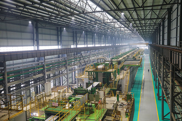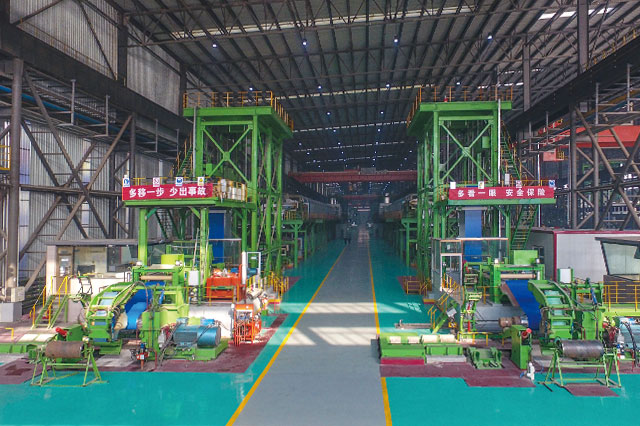 公司擁有1420酸洗冷軋聯(lián)合機組(PL-TCM)一套,機械由中國一重及中冶南方共同設計制造,電氣采用上海寶信軟件自動化控制系統(tǒng),機組設備配置合理,整體裝備達到國內(nèi)一流水平。機械設備涵蓋激光焊接設備、噴射紊流式酸洗設備、高精度雙塔式切邊設備(SMS)、五機架竄輥式UCM連軋機、新型回轉(zhuǎn)式雙卷筒卷取機,軋機電氣采用秒流量控制系統(tǒng)。
